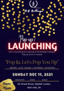 Come Sunday the 19th of December 2021, the clothing store is set to launch its Bespoke, Suits, Blazers, Footwear and accessories store on Brook Street, Mayfair London.