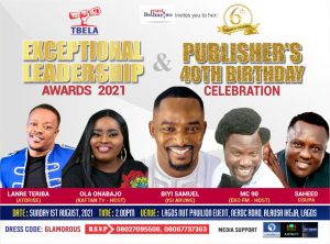 Come Sunday 1st August, 2021, (TBELA) Trust Bethnews Media Communications would be the toast of the Month as it would be celebrating 6 years of consistently informing Nigerians as well as present it’s glamorous EXCEPTIONAL LEADERSHIP AWARDS (TBELA) 2021 to the world.