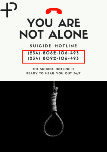 SSPI founder, further said that the forthcoming World Suicide Prevention Day Rally will be taking place at the Unity Fountain, Abuja on the 8th of September 2018 by 10.00AM Nigeria Time.