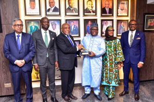 L-R: Group Managing Director/CEO, Dangote Cement Plc, Arvind Pathak; Group Managing Director/CEO, NGX, Temi Popoola; Chairman, Dangote Cement Plc, Emmanuel Ikazoboh; Group Chairman, NGX Group, Alhaji (Dr.) Umaru Kwairanga; Board Member, Dangote Cement Plc, Mariya Dangote; CEO NGX, Jude Chiemeka; during the introduction of the Dangote Cement Plc new Board Chairman and Directors to the floor of the NGX Stock Exchange, Lagos on Wednesday 10th September, 2025