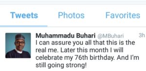 The tweet read, “A lot of people hoped that I died during my ill health. It is real me… I will soon celebrate my 76th birthday and I will still go strong. — President @MBuhari this evening in Kraków, Poland. His response to a question of him being cloned.”