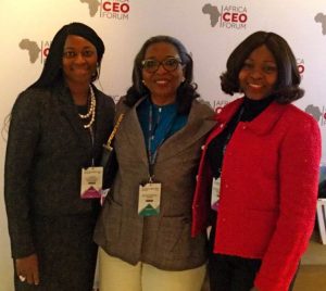 Ibukun Awosika (middle), Chairman, First Bank of Nigeria Limited, flanked by Folake Ani-Mumuney (left), Group Head, Marketing and Corporate Communications, FirstBank, and Bashirat Odunewu (right), Group Executive, International Banking Group, FirstBank at the African CEO Forum 2017 in Geneva.