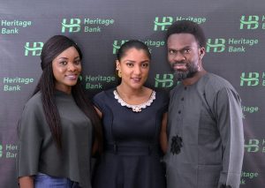 R-L: Fela Ibidapo, Group Head, Corporate Communications, Heritage Bank Plc; Omobolaji Mogaji, Media Sales Executives at Multichoice and Gifty Powers, Big Brother Naija’s housemate, during her visit to the bank’s head office in Victoria Island Lagos, weekend.