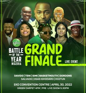One of the biggest Afrobeat artists in the world will, David Adeleke popularly known as Davido bring the Glo Battle of the Year Nigeria to a resounding close on Saturday, April 30, 2022.