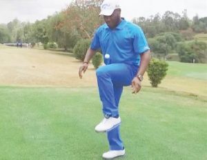 In footage filmed at the European Challenge Tour’s Barclays Kenya Open last week, the former Nigeria midfielder is seen performing keepie-uppies, seemingly unfazed by the shape and size of the ball.