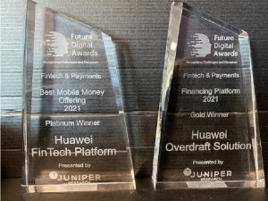 Huawei recently won two Future Digital Awards in Fintech & Payments from Juniper Research. Huawei’s FinTech Platform was awarded as the platinum winner for Best Mobile Money Offering 2021 and Huawei Overdraft Solution was awarded as the gold winner for Financial Platform 2021.
