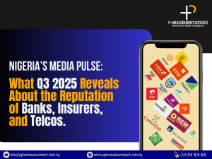 A new report by P+ Measurement Services, Nigeria’s leading independent media intelligence consultancy, provides a data-backed analysis of how reputational factors shaped public narratives across the banking, insurance, and telecommunications sectors in the third quarter of 2025.