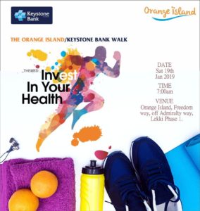 As a way of demonstrating its commitment to promoting fitness and healthy living amongst Nigerians, Keystone Bank Limited, has announced its partner,ship with Orange Island Development, a real estate investment firm, to host the maiden edition of ‘The Orange Island/Keystone walk’ with the theme: ‘Invest in your health’.