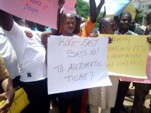 The protesters carried placards with various inscriptions, including “Kogi East say no to automatic ticket.” No senatorial primary, no PDP in Kogi State. Beware of doom”. “Release the clearance certificate to all our aspirants in Kogi East”. “It is undemocratic, un-civilised, barbaric and a dead end to PDP in Kogi State and Kogi East” and “Imposition of candidate is imposition of death.”