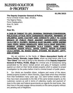 The plea was made by the head of the family Alhaji Tajudeen Ojifini, Who alleged that the land grabber in person of one Lamino Kamoru aka Sir K Oluwo who he alleged was a popular land grabber in the ikorodu axis and his cohorts Mukiala also known “actor” and one Princess Josephine Momoh whom he described as land grabbers.