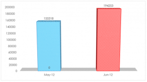 Graph showing the increase in school enrolment from May to June, 2012