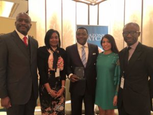 L-R: Managing Partner, GPS International LLC, Hon. Aaron Manaigo; Managing Partner, Williams Global Law, LLC, Ms Simone Williams; Group Managing Director/CEO, Keystone Bank Limited, Mr. Obeahon Ohiwerei, Director, Public Relations, Guyanese Girls Rock Foundation, Ms. Rhonda Binda and Founding Partner, Ceres Law P.C., Mr. Rudyard W. Ceres, at the Africa Women Forum (AWF) held In New York, U.S. where Keystone Bank was confered with The Global Impact Leadership Award – Best Bank In Women Entrepreneurs Empowerment Category…recently.