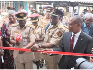 L-R: HRH, Oba Adebayo Akolade, Olora of Ora kingdom, Kwara State; Muhammad Babandede (MFR), Comptroller General, Nigeria Immigration Service; Munir Yari, Deputy Comptroller General & PCO, Ikoyi passport office and Lanre Oladimeji, Group Head, Retail Banking, Zenith Bank Plc, at the commissioning of the office building donated by Zenith Bank to the Nigeria Immigration Service, Ikoyi Office on Monday.