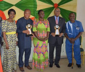 L-R: Member LOC, Federal University Ndufu-Alike, Ikwo Ebonyi State (FUNAI), Mr. Slyvanus Oko; Guest Speaker and Professor, Marquette University, USA, Prof Chima J. Korieh; Dean, Faculty of Humanities, FUNAI, Prof GMT Emezue; CEO, Heirs Holdings, Emmanuel Nnorom representing the Guest Speaker and Founder, Tony Elumelu Foundation, Tony O. Elumelu; Chair, Faculty of Humanities PR/Information Committee FUNAI, Ms. Ngozi Edeagu at FUNAI’s 2017 Faculty of Humanities International Conference held at the University’s Auditorium in Ndufu-Alike, Ikwo Ebonyi State on Tuesday