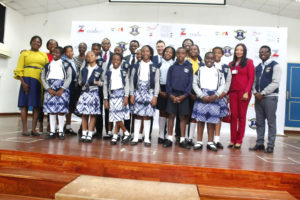 Head Teacher St. Saviours School Ikoyi, Craig Heaton, flanked on the right by Chairman Board of Management, Mr. Ade Laoye, and Chairperson Co-Curricular Activities, Olayemi Edeki and on the left by Zenith Bank Group Zonal Head Ikoyi, Adobi Nwapa, and Head of Music, Mr Omole at St. Saviours School, Ikoyi welcoming back the students from the COBIS music competition in Netherlands. The competition was held on May 3 -5, 2019, and the school won the 1st prize in Choir Vocal Ensemble and came 3rd in Instrumental Ensemble; making her the first Nigerian and African School to win the competition.