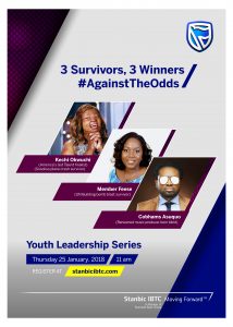 The inaugural Stanbic IBTC Youth Leadership Series – Against The Odd – will feature three remarkable Nigerians as lead speakers, Kechi Okwuchi, a survivor of the ill-fated Sosoliso plane crash of December 2005, who later went on to bag a First Class Degree from the University of Thomas Houston, Texas and emerged a finalist at America’s Got Talent; Member Feese, survivor of the United Nations Building bomb blast in Abuja and Cobhams Asuquo, renowned music producer who was born blind.