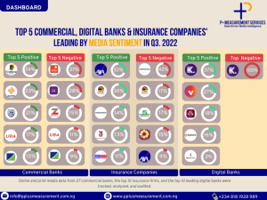 In the third quarter of 2022, P+ Measurement Services, Nigeria’s top media intelligence organization, examined the media mood around commercial banks, big insurance providers, and prominent digital banks in Nigeria. This analysis shows editors’, publishers, journalists, and opinion leaders’ perceptions of insurance and banking (digital & commercial) brands in the print and online media.