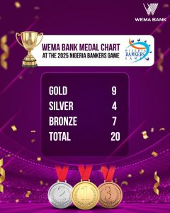 Moruf Oseni, Managing Director and CEO of Wema Bank, expressed his pride in the achievement. According to him, “Wema Bank Plc has once again won the Nigerian Bankers Games title for the fourth consecutive year. This remarkable feat sets a new benchmark in the Nigerian banking industry. As we commemorate 80 years of impact and service, this victory carries even deeper meaning for us as an institution.