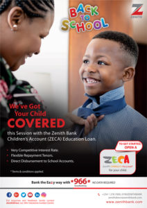 Nigeria’s leading financial institution, Zenith Bank Plc, has introduced the Zenith Children’s Account (ZECA) Education Loan to assist parents pay their children/ wards school fees as the new school session begins.